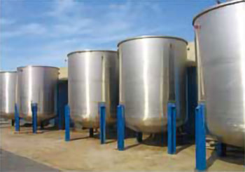 本企業(yè)生產(chǎn)的油劑配制供給設(shè)備有油劑調(diào)配槽、油劑高位槽、紡絲油劑箱等。根據(jù)生產(chǎn)要求油劑槽上除配置油劑攪拌機(jī)外,還根據(jù)工作溫度要求,油劑槽內(nèi)還配置蒸汽盤管加熱器或電加熱器。